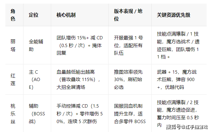 1.T0级人权角色(全场景核心):丽塔、红莲、桃乐丝