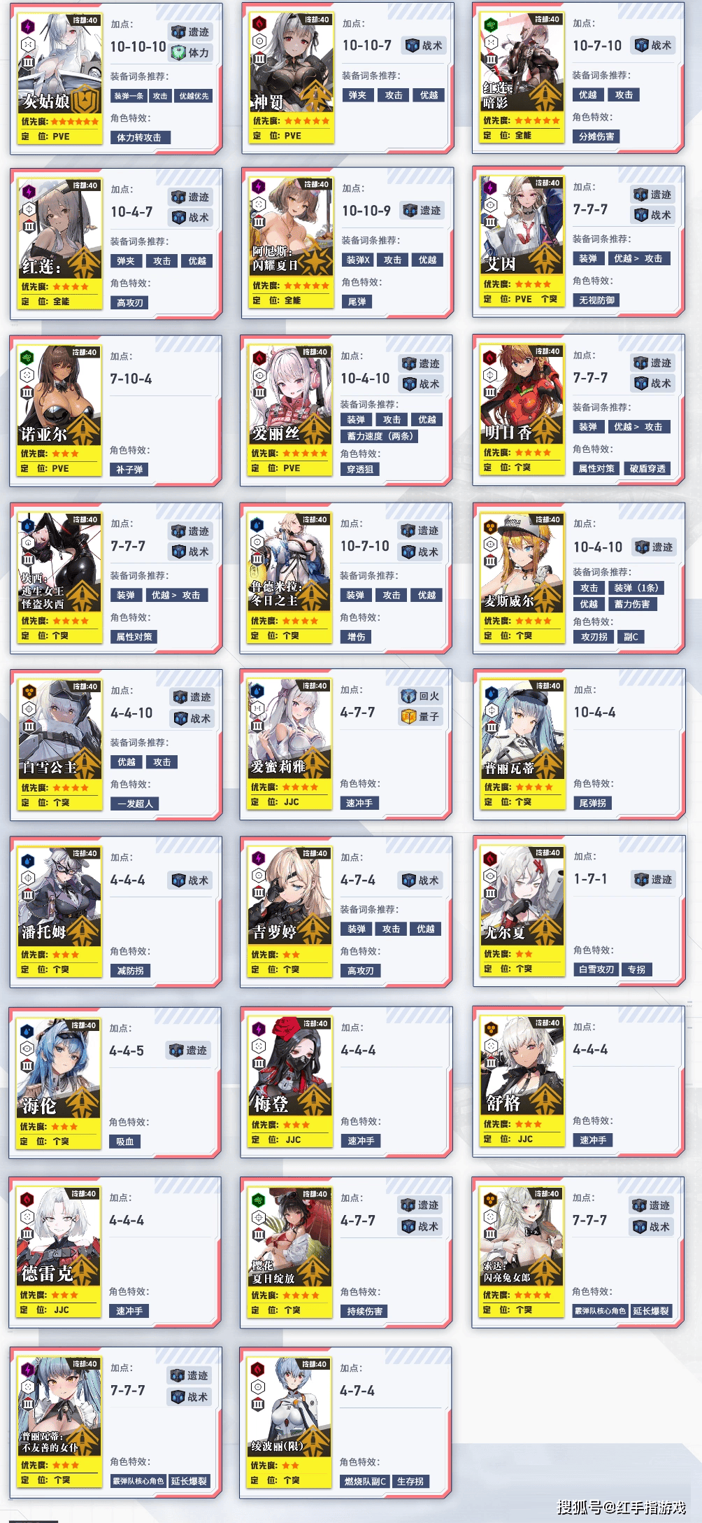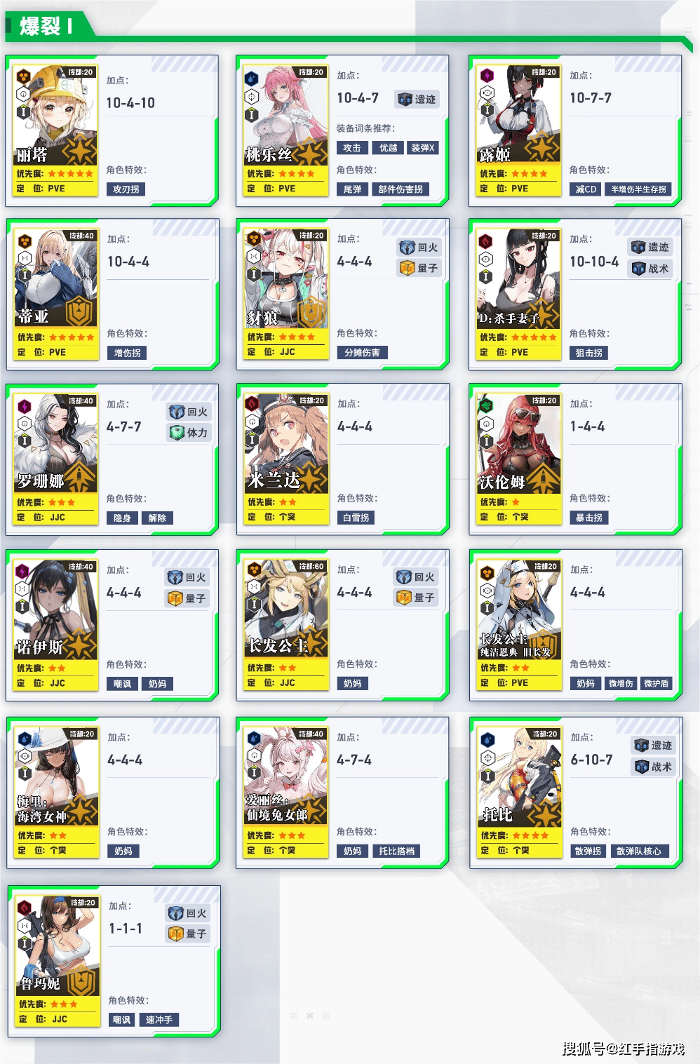 N102(SR,爆裂 I):加攻 + 弹容,开局赠送,前期过渡至 3 星即可。