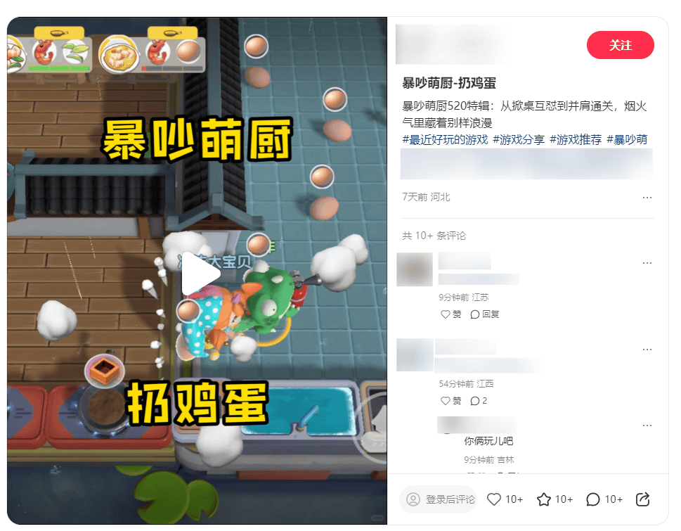 并且,这波美食热潮,也在公测当日化作线上热烈的烹饪体验分享。打开抖音和小红书等图文、短视频社交平台,可以看见#暴吵萌厨#和#暴吵萌厨公测#相关话题,曝光量已超1亿。