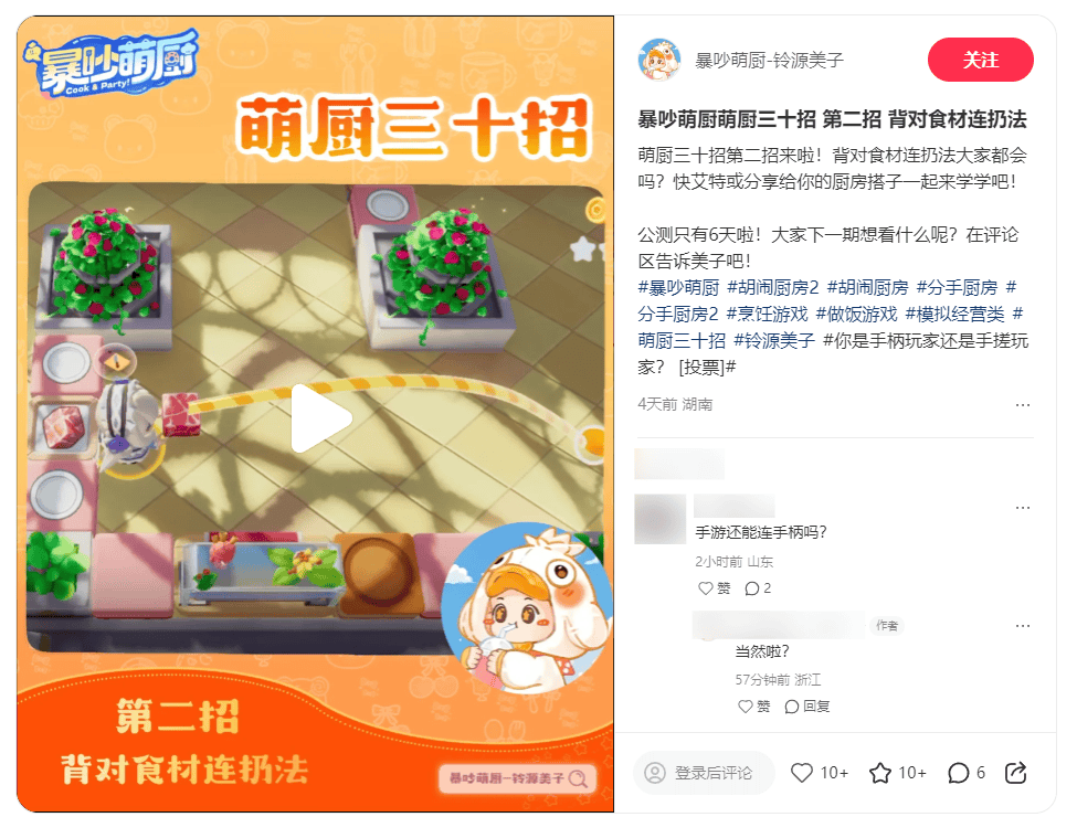 也正因这份“听劝”的端正态度,玩家对官方的最新动态也积极响应,并自发将“厨门”广而告之,以期广纳豪杰。所以公测定档视频一发布,评论区便成为了“厨搭子”们的召唤现场。而当路过的网友好奇:好玩吗?又会被玩家“超好玩”的回答一秒入坑。