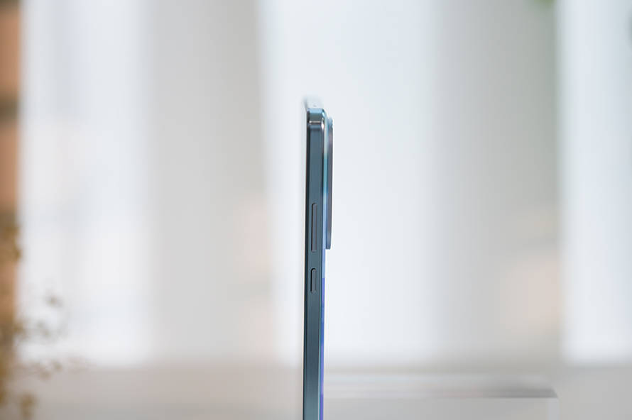 左上角影像模组,据说是采用了源自太空舷窗的设计灵感。黑色镜片悬浮在银色的模组之上,加上边缘微微凸起的金属边框,相比目前“千篇一律”的设计来说,还是挺让人眼前一亮的。