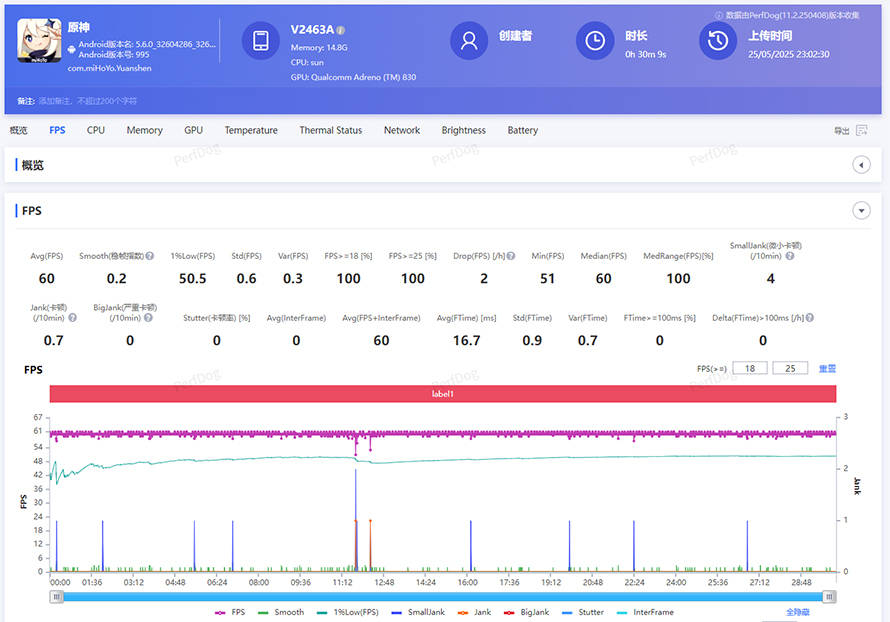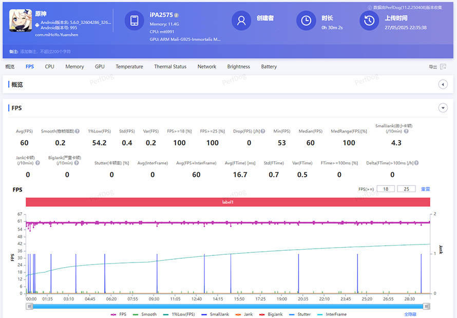 理论表现出色,那实际体验呢?我们还是使用原神进行了测试,可以看到,帧率轻松的稳在了60fps。流畅加大屏,妥妥的游戏搭子。