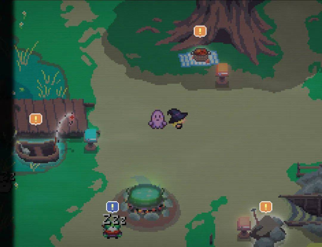 通过精妙的迷你游戏嵌套设计,《魔釜小女巫》在传统 RPG 的基础上做出了突破。在这个独特的世界中,那些于其他游戏里服务主线的分支玩法——挖矿、钓鱼等迷你游戏,都获得了独立的存在价值。而且,《魔釜小女巫》赋予玩家完全自主的节奏掌控权,让每款迷你游戏都像是一个自给自足的游乐场,可供玩家在这里自由投入精力并选择探索顺序——沉迷于在所有迷你游戏里再创分数新高,将主线任务抛到脑后;或者专精 RPG 养成策略,均匀分配花费在每款迷你游戏的时间,规划出最佳养成思路。玩家永远不会因为偏离“正确”路线而受到惩罚,反而可能会在每次揭开地图迷雾,或者解锁新的升级项后都发现新惊喜。