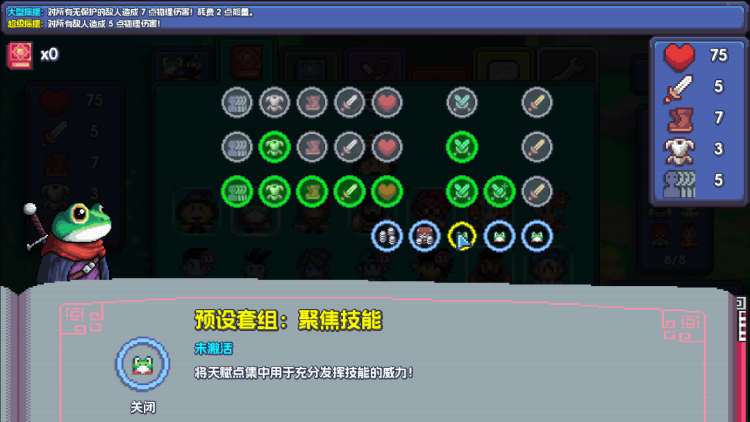 每名角色都有各自的天赋树,左半部分为通用属性加点,右半部分为角色特色和技能相关加点。如果玩家没有精力或不愿意研究天赋树,也可以点选最下面一行的“预设套组”,角色将会根据套组方向(如侧重提升技能或大招的强度)自动加点