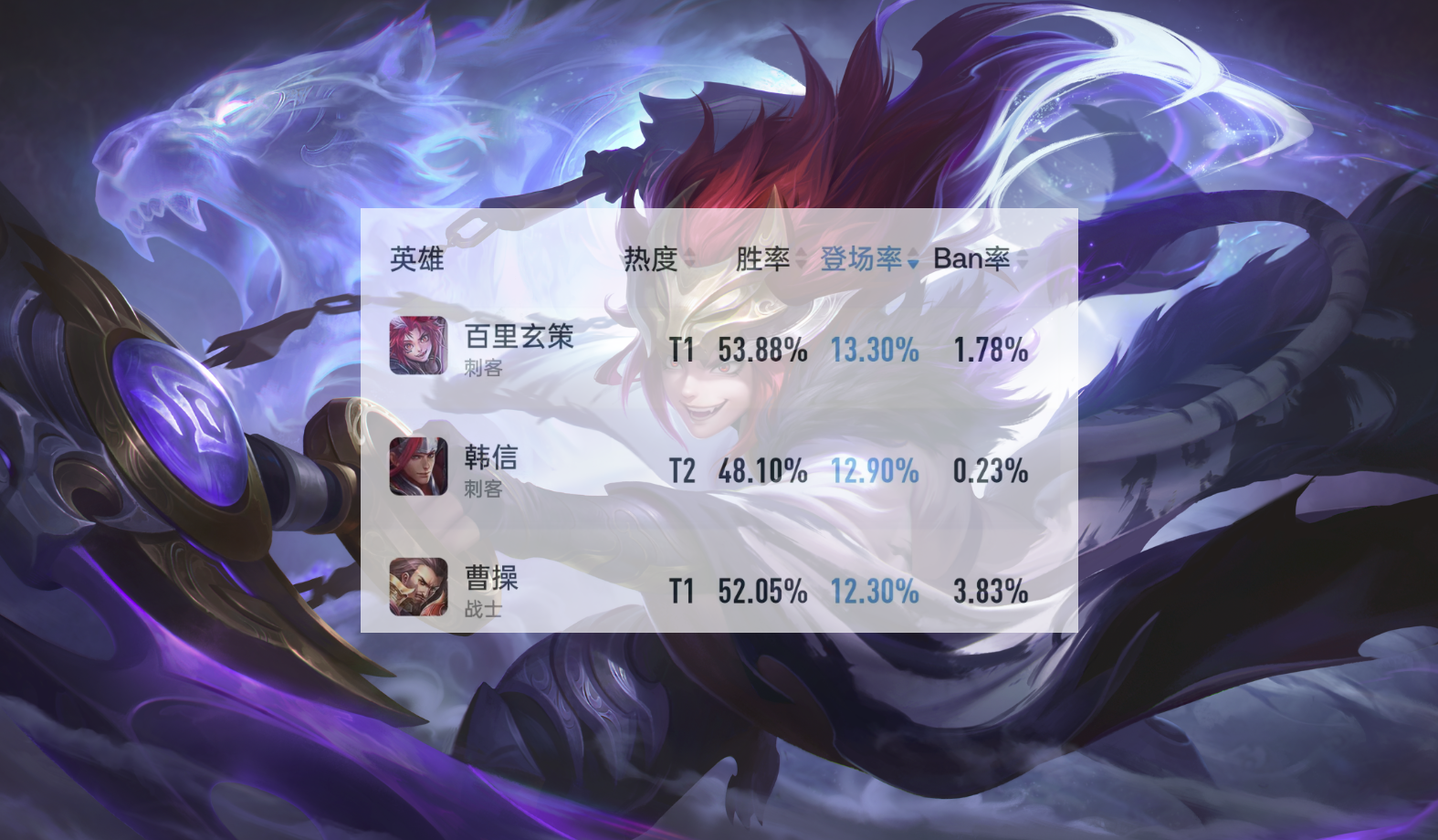 营地数据显示,百里玄策在所有段位的数据有超越曹操的趋势,他的出场率为7%,胜率高达53.64%,基本上和曹操持平。巅峰赛出场率13.3%,胜率53.88%,数据上已经超越了曹操。之前大家都在羡慕曹操,羡慕他能够打高端局。如今来看,肉刀削弱后,曹操受到了很大打击,共创最为成功的英雄反而成为了百里玄策,他的数据还在稳步上升中,超越曹操只是时间问题。