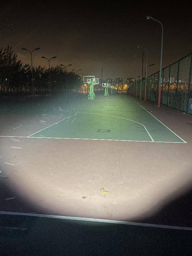 极亮3200流明下的篮球场,整个篮球场都可以覆盖,而且远处的篮筐也可以看到。