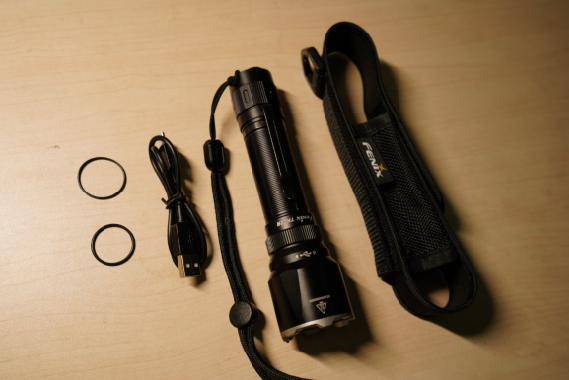 包装内有手电本体(带抱夹),手绳(后安装上去的),手电套,数据线,还有一大一小两个防水胶圈,为什么是一大一小呢?后面我会跟大家说明。