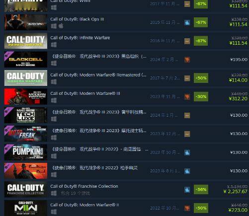 并且目前Steam《使命召唤》系列作品现促销售卖当中!