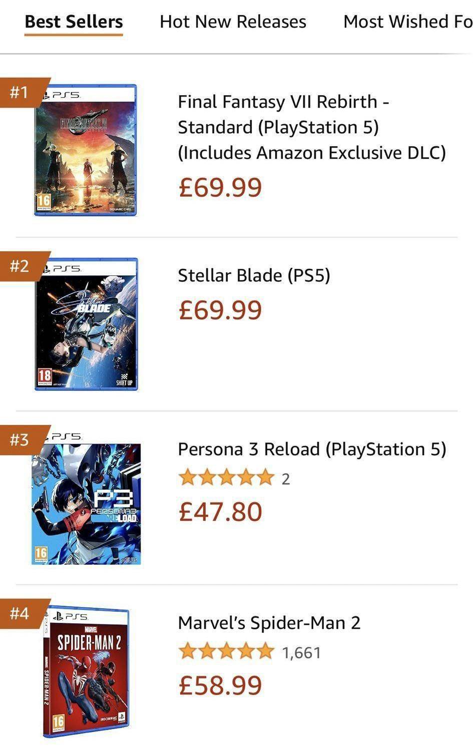 目前,《星刃》已经成为美国PS商店第二畅销的游戏,甚至超越了《最终幻想7:重生》。而在亚马逊电商预购中,《星刃》的表现更好,该作在美国、日本和加拿大等不同地区都处于游戏销售榜前三。