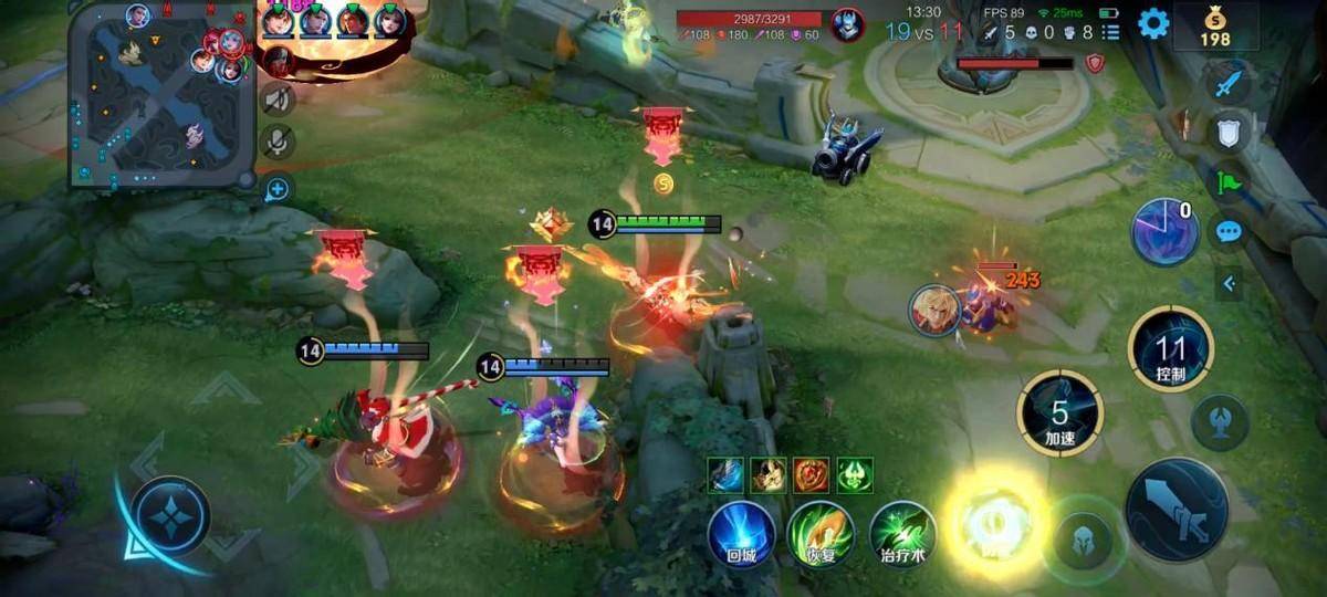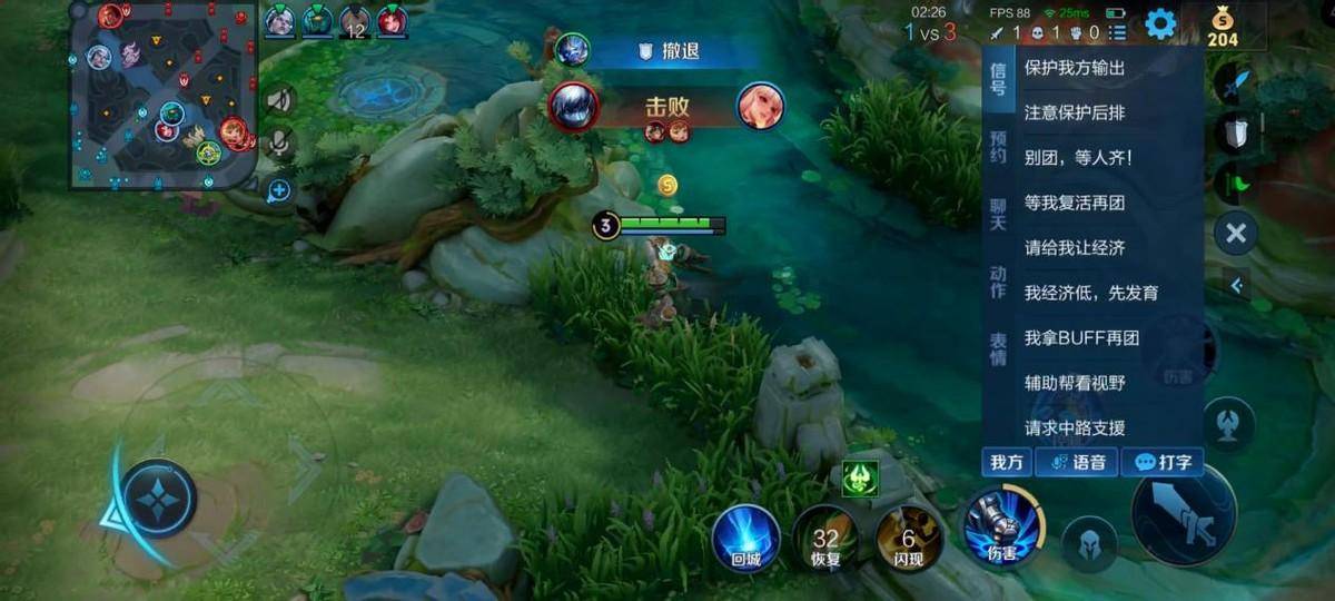 这两张图是一个正面教材。首先我们观察发育路形式,我们辅助到4级了,对面辅助张飞才3级,马上4级,这个时间点是一个机会。再看小地图敌方打野在上法师在中,下路不可能有人来支援。