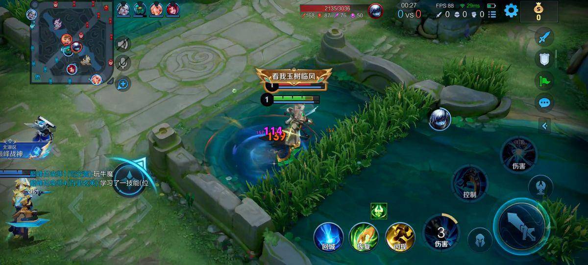 这两张图就说明了敌方法师经验不足。大部分钟馗一级是学二技能的,钩buff或者是尝试把人钩回塔里,这种玩法是在赌,赌自己这一钩子能打出效果。但是有一部分钟馗是学一技能的,比如我,这种钟馗一级抢线和贴脸打架能力极强,这个是很多人没见过不了解的。