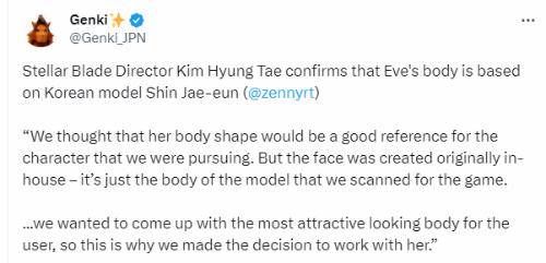 金亨泰首先证实了游戏确实是以韩国模特申在恩为原型塑造了伊芙这个角色,“我们认为她的体型对我们所追求的角色来说是一个很好的参考。但脸部造型最初是我们内部创作的,我们只是为游戏扫描了模特的身体。”