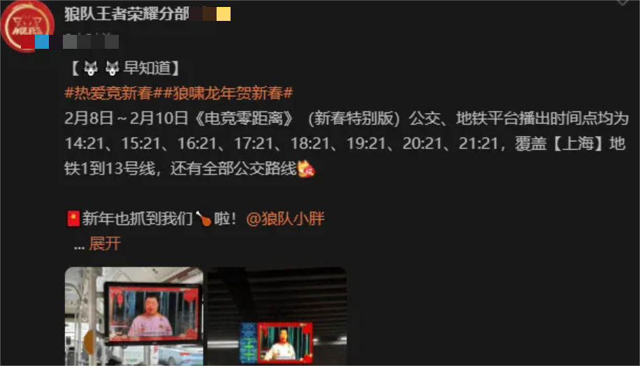 个人观点:狼队在新春期间算是给足了小胖排面,就连上海这种寸土寸金的地方都将全地铁路线和全公交线的广告屏买下,只为宣传小胖。当然,狼队管理层和运营作为商人,这么做肯定是不会吃亏的,这样能够有效的安抚粉丝,树立良好的形象让更多的粉丝自愿为小胖消费。