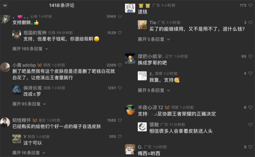 当然了,王者荣耀玩家和广大网友针对梅西皮肤问题,评论还是出奇一致的。没错,王者荣耀玩家直言想要删除梅西皮肤,但又不太可能,所以直接退点券就好了,哈哈。另外,有玩家提出给已经入手的人发放一哥好一点的限定皮肤自选箱子,对此你们认为行得通吗?各位玩家们,你们对此有什么想说的话,记得在留言区跟我交流沟通哈。