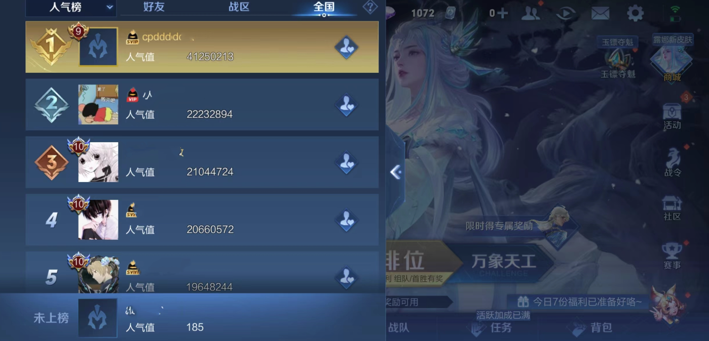 参与排名的玩家需要打开自己的定位,比如你是上海的玩家,那么你的排名只是局限于上海市。如果你的排名过高,那么你将跳出上海市,直接参与国服排名。每一个国服玩家技术都很强,他们是从上百万玩家中选拔出的顶尖高手,只要你有一个国服英雄,发在朋友圈,就能引发很多好友羡慕,这就是成就感,也是很多人追求国服排名的原因。