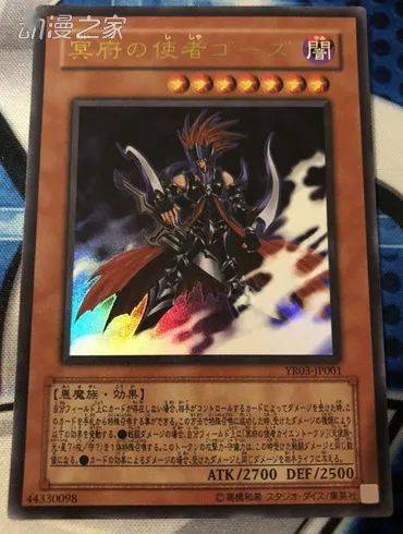 “自己场上没有卡存在的场合,因对方控制的卡受到伤害时,这张卡可以从手卡特殊召唤。这个方法特殊召唤成功时,受到的伤害的种类的以下效果发动。●战斗伤害的场合,在自己场上把1只‘冥府之使者衍生物’(天使族·光·7星·攻/守?)特殊召唤。衍生物的攻击力·守备力变成和这个时候受到的战斗伤害相同数值。●卡的效果的伤害的场合,给与对方基本分和受到的伤害相同伤害。”