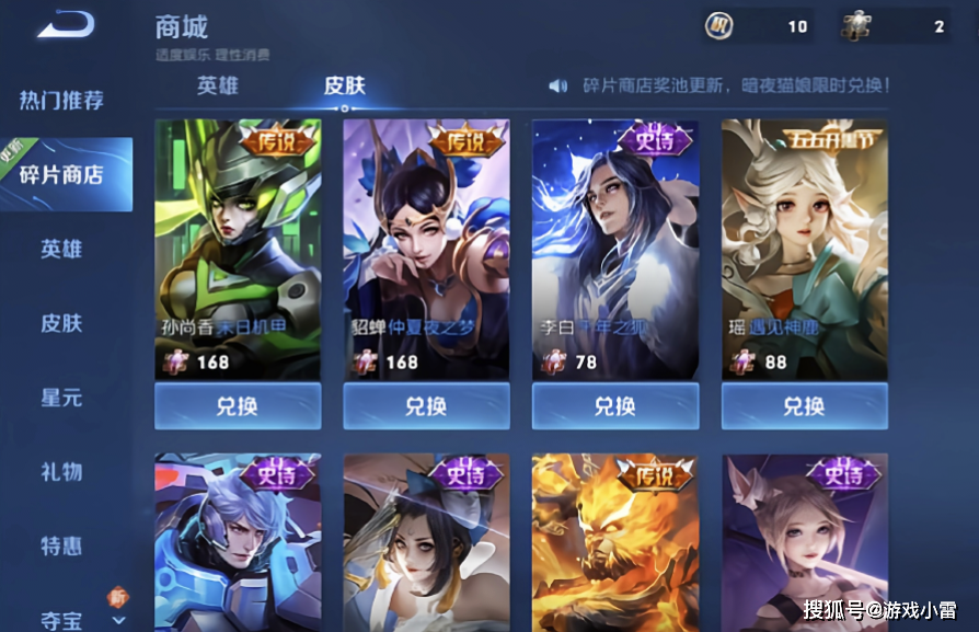 此外,13号更新突变后续,碎片商店也将迎来上新,毕竟碎片商店每两周就要更新一波,13号刚好是两周时间了,在此次的碎片商店上新之中,朵莉亚的勇者皮肤将会进行下架,所以趁着目前还没有下架,感兴趣的玩家可不要错过用48碎片兑换朵莉亚的勇者呀!那碎片商店更新之后,全新上新的皮肤有小乔的缤纷独角兽,还有白起的星夜王子,不仅如此,据知情人士透露,还会上新一款全新的皮肤到碎片商店之中,不出意外的话,应该就是兰陵王的暗影猎兽者了,还有概率会是司马懿的暗渊魔法,所以,13号后续碎片商店的一波上新,也称得上是碎片商店突变了。