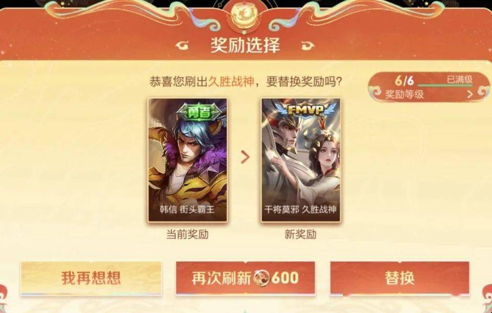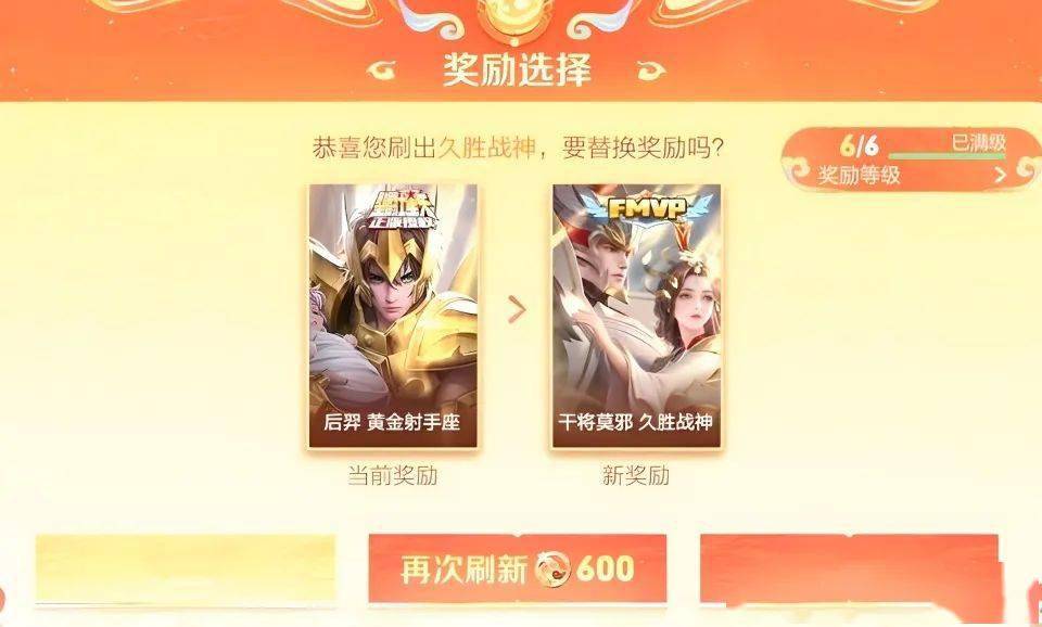 其二便是小龙商店刷新的奖励升级,已有玩家刷出传说级皮肤,比如张良黄金白羊座、干将莫邪久胜战神等,而想要拿到传说皮肤的前提是,大家将奖励等级提升至6级才行,因为只有满级,传说皮肤的概率才会由0提升至千分之八,所以在达到六级后,小伙伴先别急着领取史诗皮肤,而是继续收集小龙糕刷新奖励!