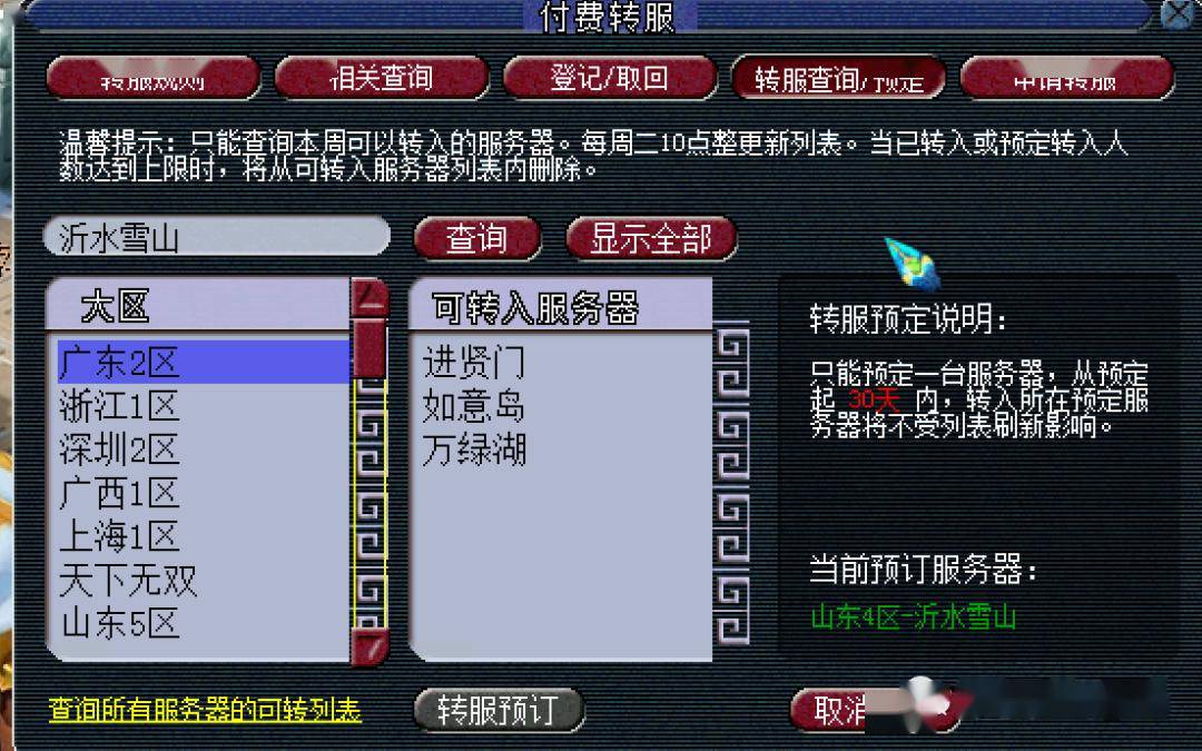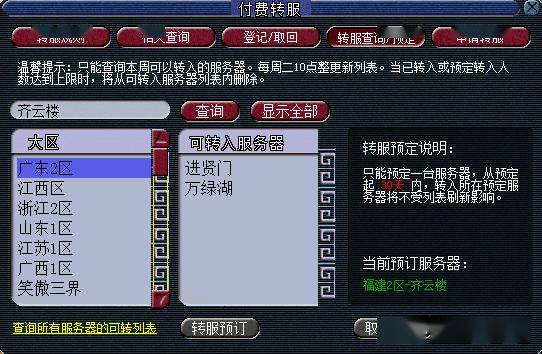 工具箱里选择可转服列表,周二早上8点后进去选择一下自己的服务器,就能看到自己的区能转什么服务器了(一般是6点左右刷新,但有时候可能有延迟,最晚应该也不会超过8点)