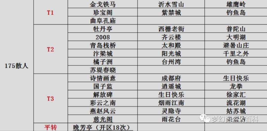 175散人玩家最多的区基本都在T1,渔岛给排在了T2碗弟就觉得很真实,有时候散人是真组不上队啊其实任何一个区都有175的散人,所以不用太纠结,T1没开就去T2,T2没开就去T3,表格里的区再怎么差也总比万年平转区人多!