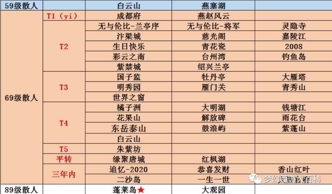 散人玩家想要获得更好的游戏体验,可以根据月月去年统计的表格来转下面表格里的区都是各等级散人玩家最多的区,综合考虑的因素有对应等级散人玩家数量、服务器延迟等等,数据并非绝对准确,表格排名仅供参考。
