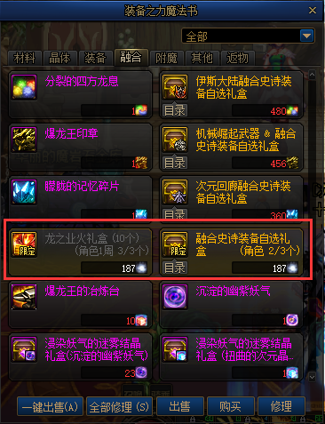 最后,在迷雾商店中,也可使用稀薄迷雾来兑换扭曲的次元结晶体、龙之业火以及3个融合史诗自选礼盒。可帮助角色在完成融合的路上加快进度。