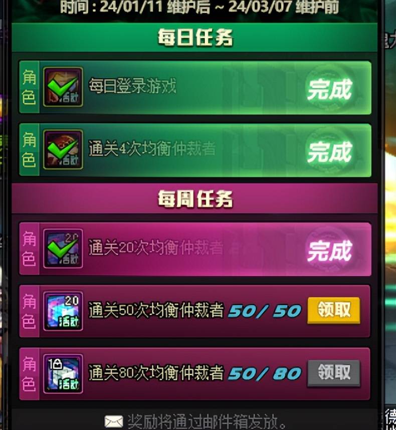 “激战!均衡仲裁者“,每天至少4次深渊,一周至少80次深渊即可获得75个【扭曲的次元晶体】和1个【清澈的迷雾晶体】。该活动每个角色的奖励是分开的,即角色越多,获得的晶体也就越多,因此可以尽可能多的用小号参与。