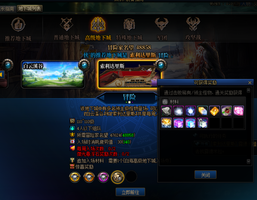 神界高级副本有两个:白云溪谷和索利达里斯。白云主要产出高词条装备,用来提升装备词条等级,推荐大号用来追词条进度(在有深渊活动的加持下,冒险及其以下难度不推荐刷)。索利达里斯主要产出扭曲的次元晶体,可以尽可能多的去用小号参与。