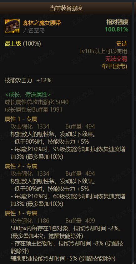 腰带部位:森林魔女系列,该装备依旧是在兼容伤害的同时还提供冷却。当前多数流派的冷却都依赖森林魔女腰带和戒指。