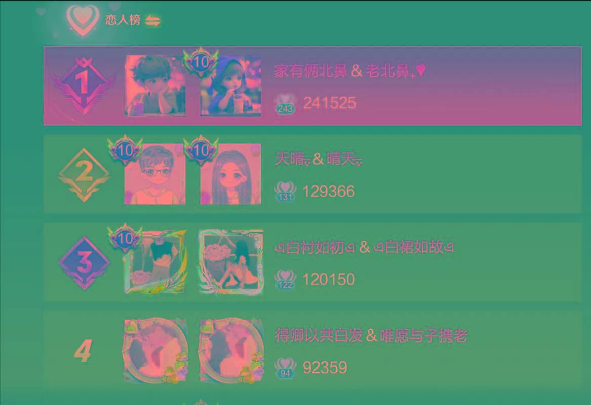 而且无论在哪一个区服,情侣排行榜单当中的排名等级永远要比其他榜单的排名等级要高。
