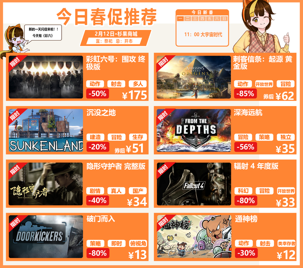 杉果“新春特惠”特惠如火如荼进行中!全场数千款游戏集体平史低,叠加满减券后轻松击穿 Steam 史低,超值折扣不必担心背刺!是不是已经怦然心动?那还等什么,快来杉果杉果“新春特惠”特惠看看吧!