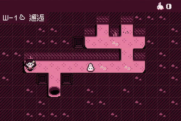 所有的兔子遵循着这样一套行动逻辑,而玩家需要在各色关卡中不断探索并了解兔子的逃跑机制,将它们逼入死路,成功捕获。认识到兔子的基础逃跑模式之后,道具就被加入到新的关卡中。你可以用笼子堵住路,用镐子挖开一块地砖,用胡萝卜吸引兔子,用铲子创造向下一层(下一关)的入口!这样一来,己方看似变得更为强大,但兔子应对这些道具也有自己的行动逻辑,又需要猜测新的规则啦!逐渐熟悉了道具机制及地图模式之后,一些“难道还可以这样?”的想法油然而生:或许本作不只是关卡制的解谜游戏……?开发者一开始就想好了这些东西吗……?