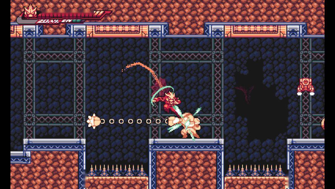 复古像素游戏的精神续作,一直是独立游戏领域里很重要的一个类型。许多开发者都是带着对童年玩过的经典游戏的憧憬与敬意,开发出属于这个时代的复古游戏。直白点说,《重力回路》是个“类洛克人”作品。无论关卡结构、剧情还是动作设计,你都能找到《洛克人》系列,尤其是《洛克人 Zero》系列的影子:失忆主角与昔日伙伴为敌,闯过八个有 Boss 坐镇的关卡且可自行选择攻略顺序,接着挑战最终关卡与幕后黑手战斗,当然,还少不了经典的 Boss Rush……除了洛克人,你还能看到其它一些似曾相识的要素,比如跳跃中的下攻击会让人想起《唐老鸭梦冒险》,而下蹲攻击的动作设计与《特救指令》中的某个动作如出一辙,游戏的最后一幕神似《恶魔城》......无时无刻不让你想起以前的美好时光。