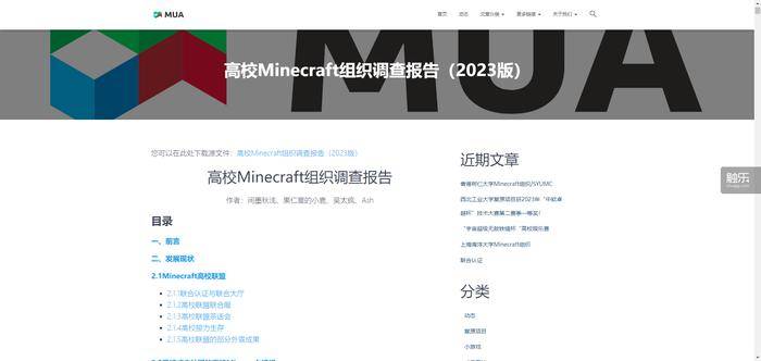 报告于2023年10月20日发布,在报告中,间墨表达了一种信念:“各个高校的《我的世界》组织的发展,正面临大量难以解决的困难,没有一条所有组织都能够借鉴和参考的发展道路,而联盟正在努力解决这一点。”