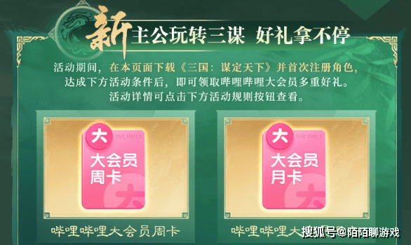 B站这次是真下血本了!即日起至6月30日,在B站客户端,搜索“三谋”,从“新人领大会员”入口进入,下载并注册《三国:谋定天下》,你的大会员之旅就成功启航。