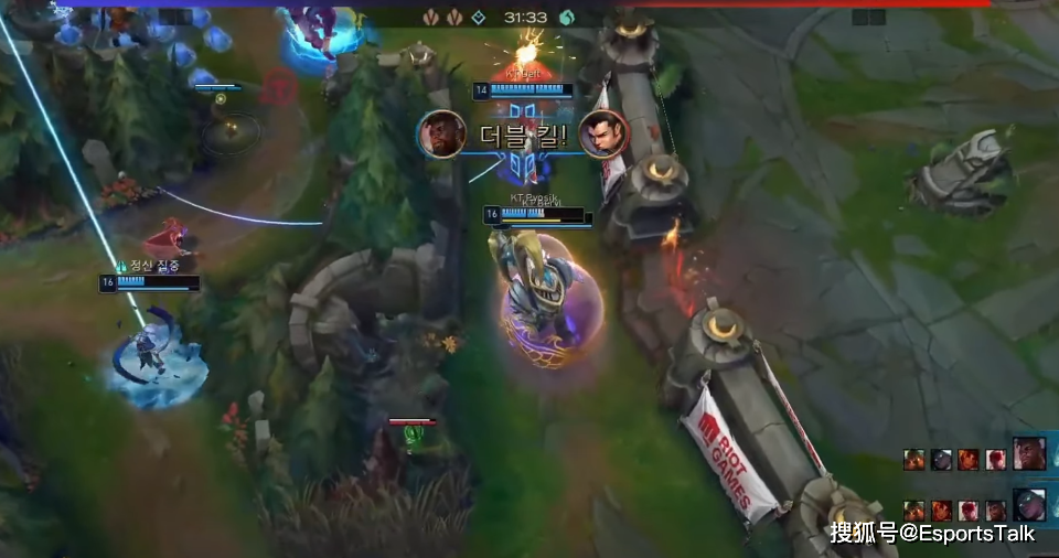 首局比赛双方就来了一场翻中翻的好戏,前期Pyosik盲僧下路两度gank帮助KT打开局面,Chovy沙皇在团战中遭到KT中野辅三人重点关照几乎次次被秒。中期,GEN打赢了一波非常不错的中路团战,已经是拿回节奏了,结果kiin单人追敌太深惨遭围殴被击杀,KT也是抓住人数差的机会,直接rush大龙拿下buff,携带这波大龙buff,KT也是将经济差拉开到5K,之后的几波团战,无论是beryl还是BDD,他们都会在团战中优先瞄准chovy沙皇下手,失去了核心输出的GEN也是慢慢支撑不住,最终在一波上路0换4后,KT一波拿下了首局比赛。
