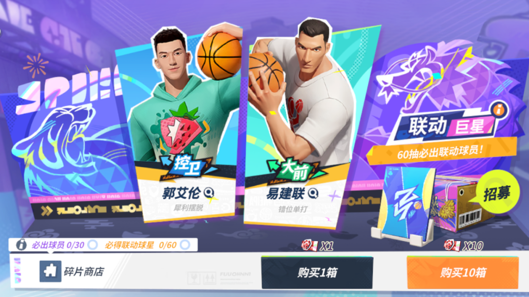 1月24日到4月24日7点,注意虎啸龙吟补给箱的时间。想必各位已经在新版本中见识了郭艾伦和易建联的可玩度,所以想要抽取两位限定角色的街球手们,做好规划,不要让自己留下遗憾哦!