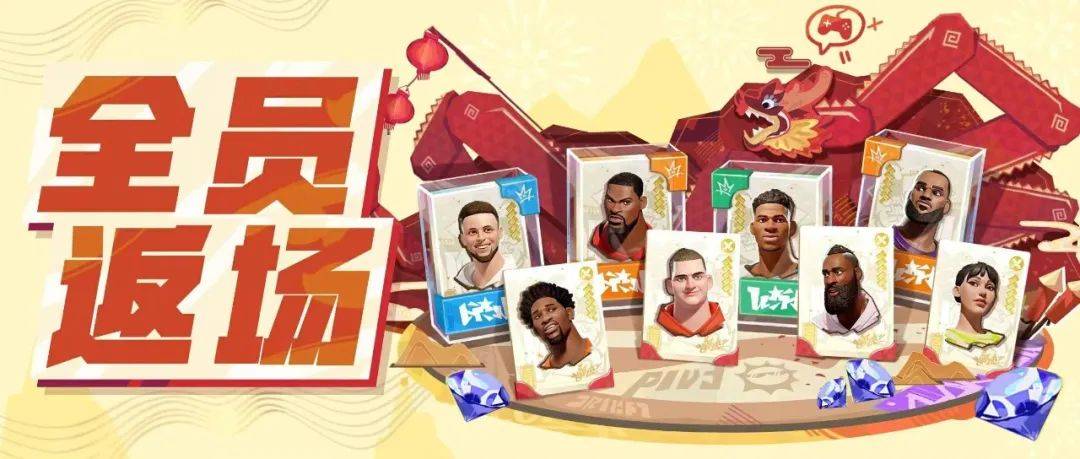 巨星贺岁返场补给箱也仍在进行中,截止到2月21日10点,詹姆斯、约基奇、库里、杜兰特、扬尼斯、韩旭、哈登、恩比德八位巨星一同返场!八位各具特色的巨星定向任你选择,而且无CD定向招募。无需再等待轮换返场,心动哪个就直接拿下!抱着心爱的球星春节期间猛猛上分!
