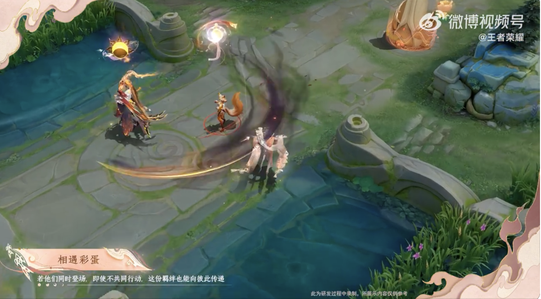 曦玄引的局内表现也十分华丽,不仅技能特效和音效都经过精心制作,还有许多情侣皮肤的彩蛋和互动。比如,貂蝉的被动效果叠满三层时,印记上会出现代表吕布的玄鸦;吕布进入附魔状态时,附魔标记上则会有象征貂蝉的游鱼。