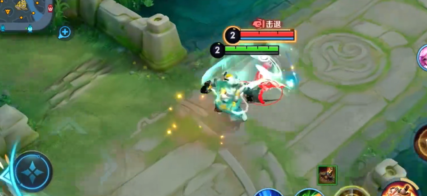 开团战时,我们可以先一技能把敌人击退,周围有墙体多利用2技能推人,不要担心对手在你身后就无法推到人,只要他距离很近一样能推到墙边。