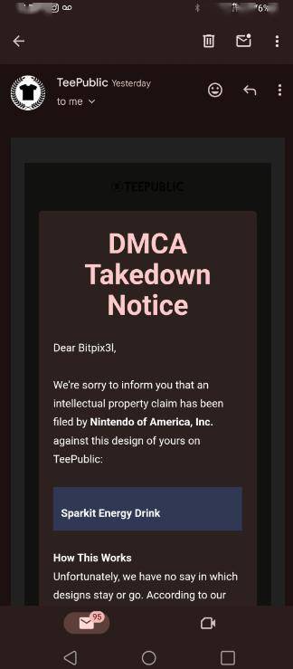 据dexerto消息,近日一位玩家从《幻兽帕鲁》中的“伏特喵Sparkit”获取灵感并为一款能量饮料进行了创作设计,但此作品收到了任天堂发布的DMCA禁令警告,引发热烈讨论。