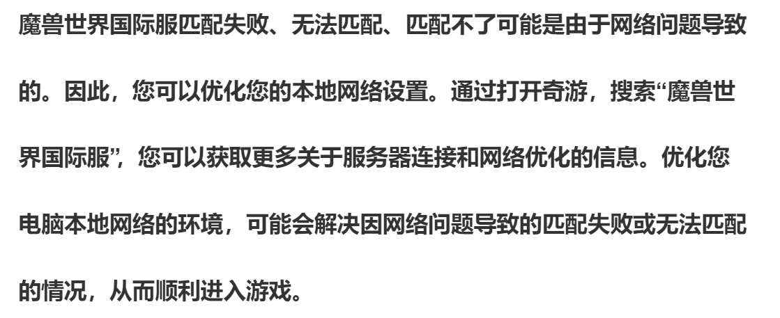 在魔兽世界国际服的游戏过程中,有时候会遇到匹配失败、无法匹配或匹配不了的问题。这些问题会导致玩家无法顺利进行游戏,给游戏体验带来困扰。但别担心,我们为您整理了几种可行的解决方法,帮助您解决这些烦恼,让您畅享游戏乐趣。