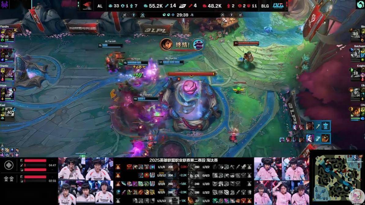 明明应该优先发育的阵容,结果BLG选择前期和AL接团,布隆和大树的完美限制导致BLG的双C屡次暴毙。前期迅速建立起优势的情况下,AL直接滚雪球没给BLG任何翻盘的机会。