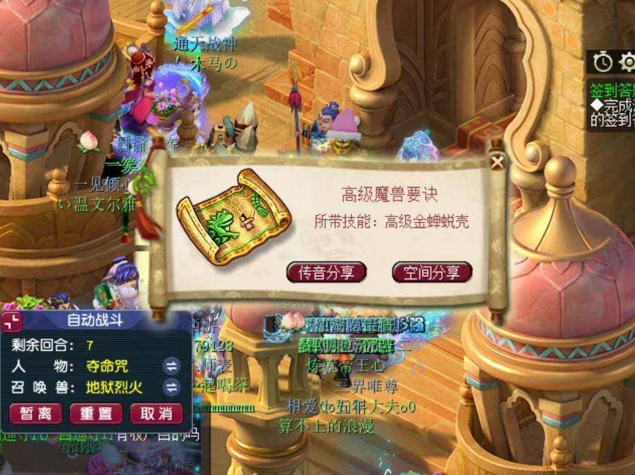 在上周日的文墨活动中,有一位玩家在转盘中幸运地获得了高级必杀兽诀,轻松赚取了约5000万梦幻币。然而,另一位小伙伴对此表示不服,并果断选择挑战。他通过科举活动获得了一本高级金蝉脱壳兽诀,这本兽诀是目前市场上价值最高的高级兽诀,保底价值至少1亿梦幻币!