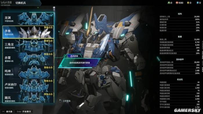 譬如适合骚扰、牵制的轻型机“矛隼”,其机身设计的便主打简洁轻盈,流线型的机体带来更迅捷的速度,而牺牲护甲换来的轻盈体型,让他的战斗风格更为飘逸灵动的同时,也极为考验玩家的操作水平。