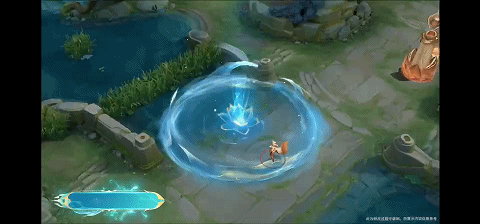 三技能跳跃空中时,选定目标的区域中心,会出现莲花绽放以及冰山风雪的图案,落地后,还会浮现出白狼魂踩在莲花上咆哮的虚影。