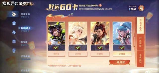 在除夕过后,好运60卡目前的价格为880点券,如果只买一款皮肤,总共会返还9张优惠券,后续可以拿去抽点券,保底60,最高288,脸黑就是60x9=540点券。