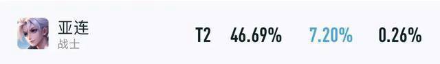 以上是亚连最新的巅峰赛数据,46.69%胜率+7.2%出场率,表现比较一般,尤其是胜率仅排在倒数第四,相比于上个赛季还是要弱上不少的。