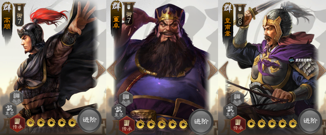 首先是高顺、董卓和皇甫嵩三个坦克前排。