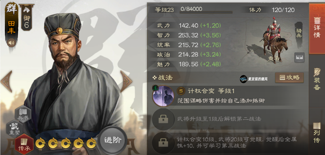 皇甫嵩是纯保护型,自带援护的武将,可以省一个固若金汤。五赛季皇甫嵩在数值上大大加强,不管是开荒还是打架都比以前好用了。